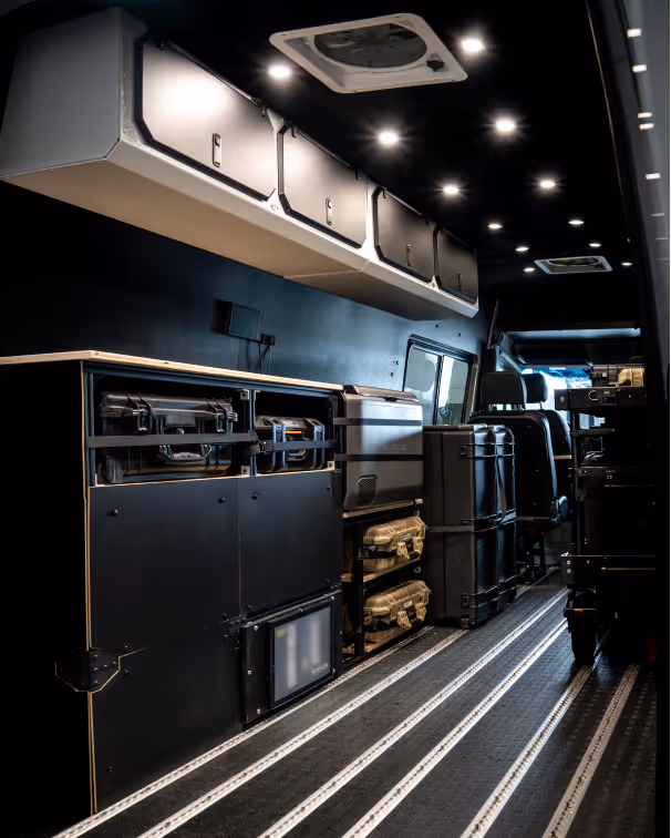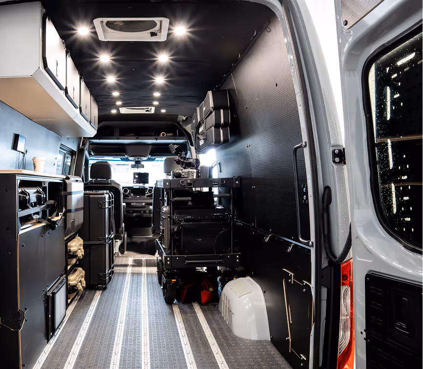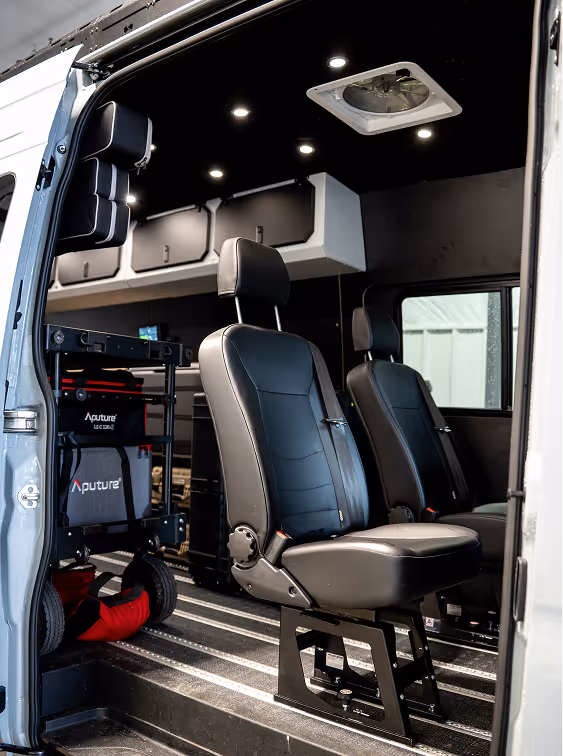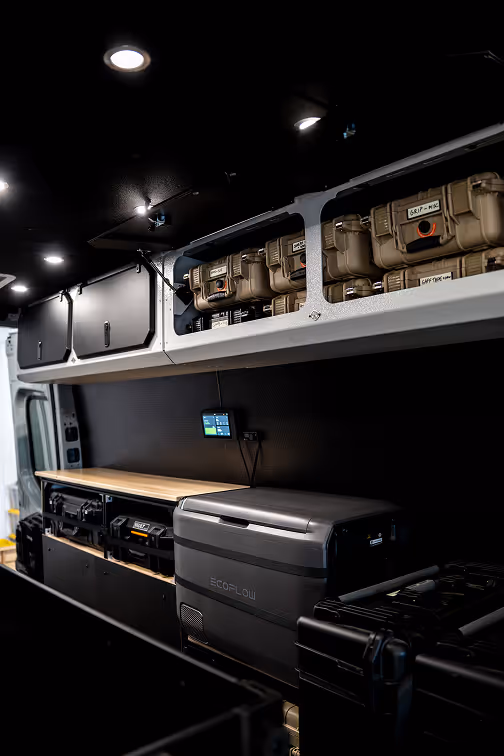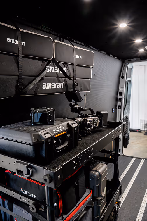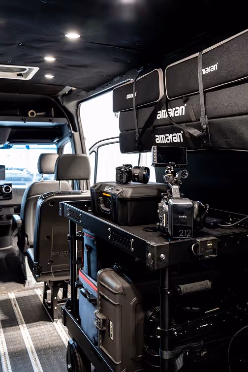 - Dedicated charging station for cameras, lights, and tools